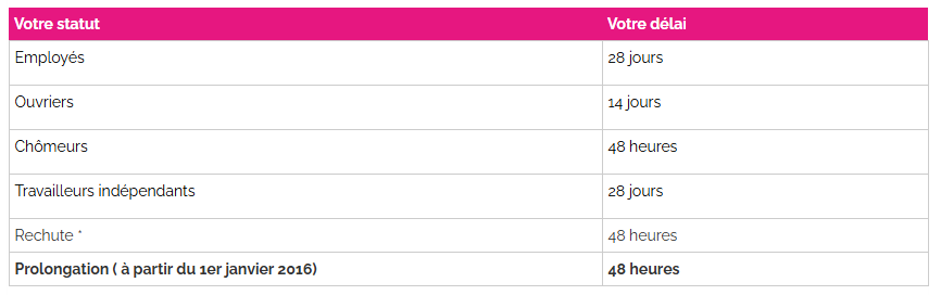 En cas de maladie, vous devez déclarer votre incapacité de travail auprès de votre mutualité en respectant les délais suivants :